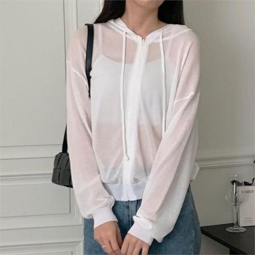 [다잇템]여자 비치룩 비침 빅사이즈 흰색 SS 후드집업 (9915056A)