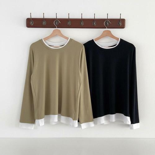 [미라클세븐]여성 배색 레이어드 빅사이즈 기본 긴팔 티셔츠 이중넥