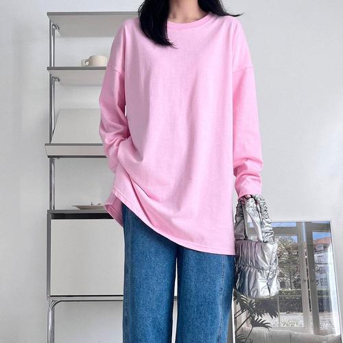 순면티/오버핏/반팔티 여성 오버핏 긴팔티셔츠 박스티/반팔티셔츠 빅사이즈 긴팔티/반티/무지티