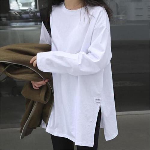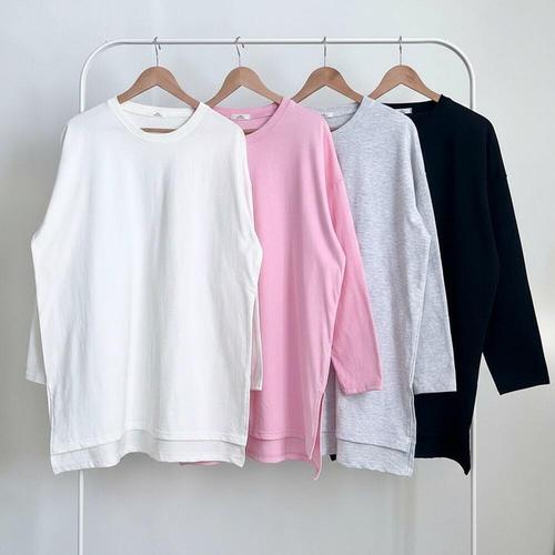 아이우먼 여성 빅사이즈 오버핏 라운드넥 옆트임 긴팔 티셔츠 봄 가을