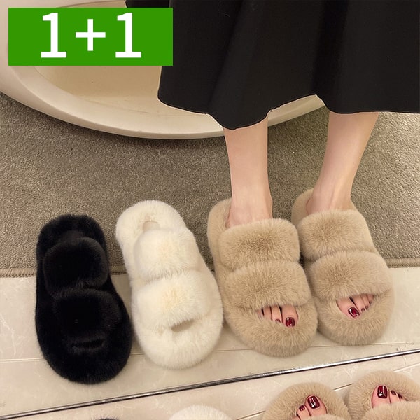 1+1 체크 그리드 겨울 커플 털 실내화 층간소음 거실화 5color