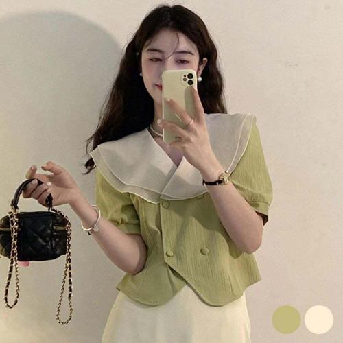 [오너클랜]인기상품 레이스 빅카라 쉬폰 여성 블라우스 이중카라 셔츠 [WFLLPUA_260305]