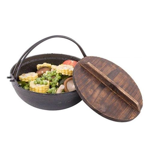 나무뚜껑주철냄비 나무뚜껑 빈티지 주철냄비 17cm 야외 캠핑용 바베큐 불멍화로대냄비