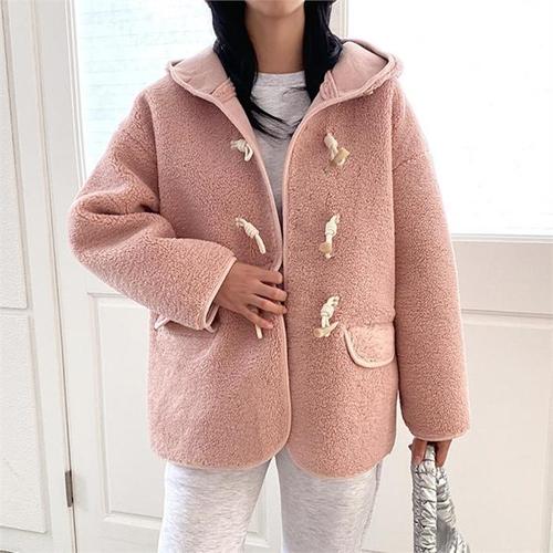 TIMEPURE 플리스 후드 코트 여자 가을 겨울 버튼 신상 루즈핏 뽀글이 부클 따뜻한 상의 도톰한 슬림핏 보온 솔리드 심플 아우터 후리스 점퍼 자켓