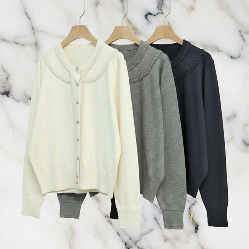 [신상오픈런]여성 데일리 사무실룩 카라 니트 가디건