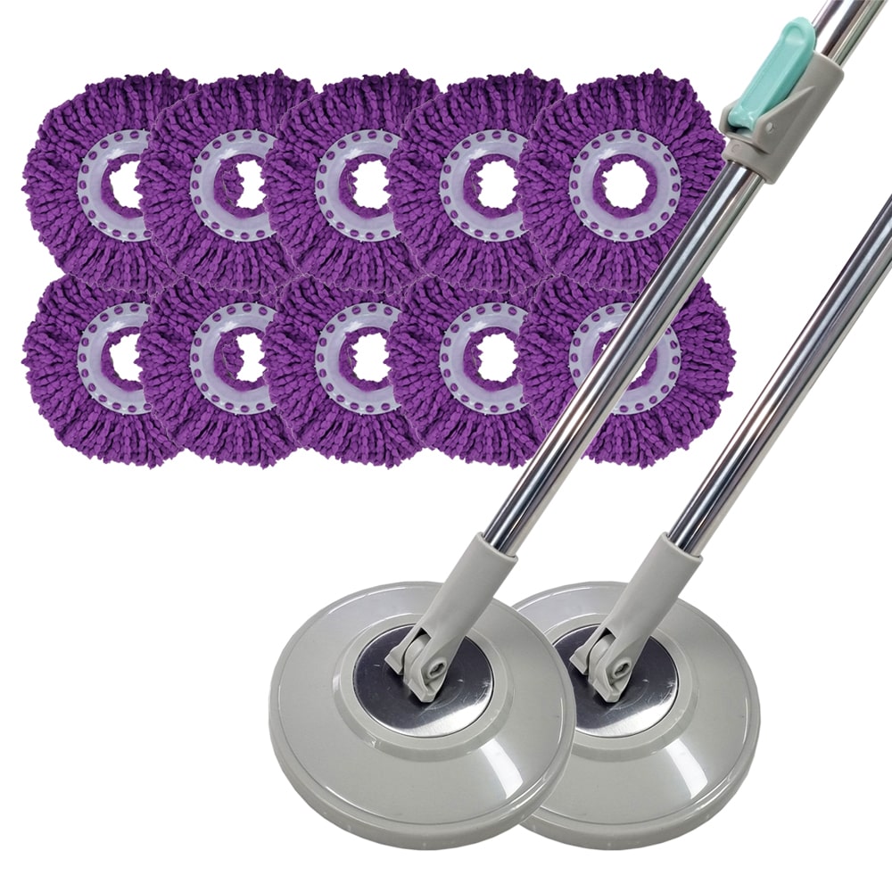 TEMU 3개 세트 (1개 스틱 및 2개 교체 헤드) 59인치 길이 조절 청소 밀대 (긴 손잡이 포함) -- 360도 회전, 바닥, 벽, 천장 및 창문에 적합