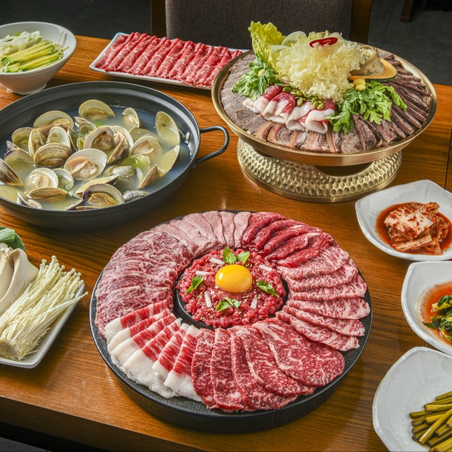 백합탕 샤브샤브와 최상급 한우 구이. 단체룸 52인까지 완비.