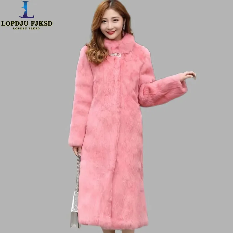 진짜 렉스 토끼 모피 코트 여성 가을 겨울 오-넥 자켓 두꺼운 따뜻한 새로운 우아한 여성 커버 버튼 겉옷