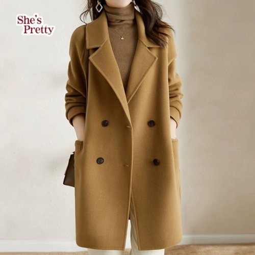 TEMU 여성용 무릎 길이의 고급 디자인 긴팔 트렌치 코트, 슈트 칼라 및 더블 브레스트 캐주얼