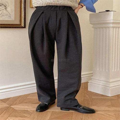 [다잇템]여자 세미정장 울팬츠 넓은 하프밴딩 슬랙스 (9105727A)