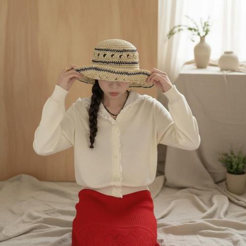 [옷자락] 여성 봄 데일리 레이스 후드 크롭 가디건