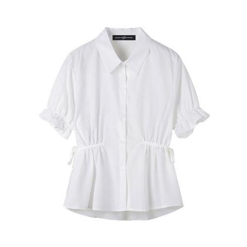 [나인식스뉴욕(영캐릭터)]사이드 리본 끈 소매 밴딩 반팔 블라우스 (NO2BA015L0)