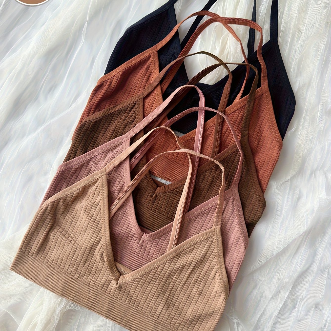 TEMU 심리스 골지 컴포트 와이어프리 크리스크로스 백 컵 여성용 브라 5개입