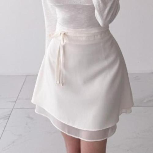 [신상오픈런]여성 리본 장식 더블 레이어 쉬폰 랩 스커트 (41340990)