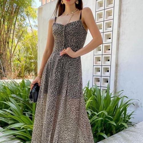 [다잇템]여성 레오파드 비침 시폰 트임 코르셋 롱원피스 (10298366A)