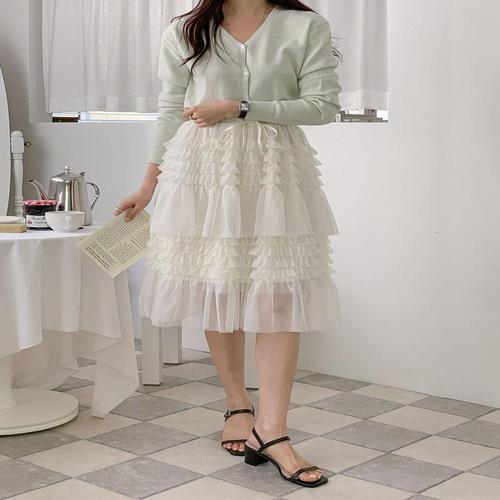 [하젤]디아베 쉬폰 프릴 캉캉 미디 스커트_S4593