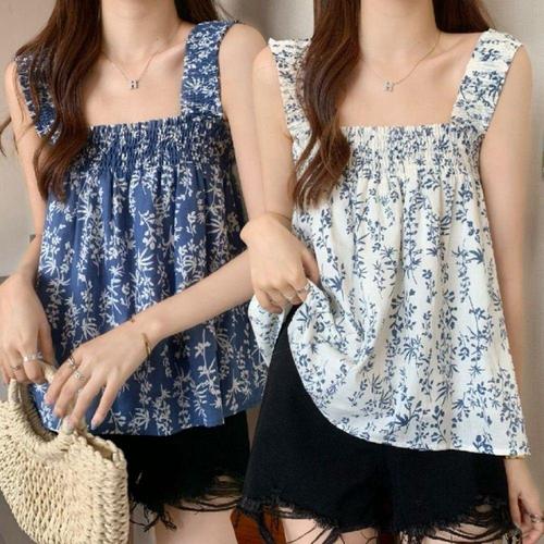 [오너클랜]인기상품 꽃무늬 여성용 스모크 밴딩 나시탑 여름 캐주얼웨어 [WFLLK59_260305]