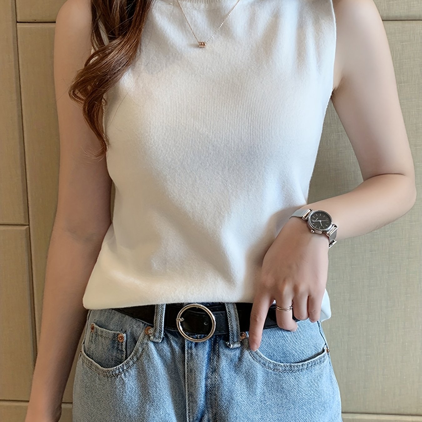 TEMU 여성용 민소매 조끼, 하프 하이넥 캐미솔, 솔리드 컬러 내부 레이어 풀오버