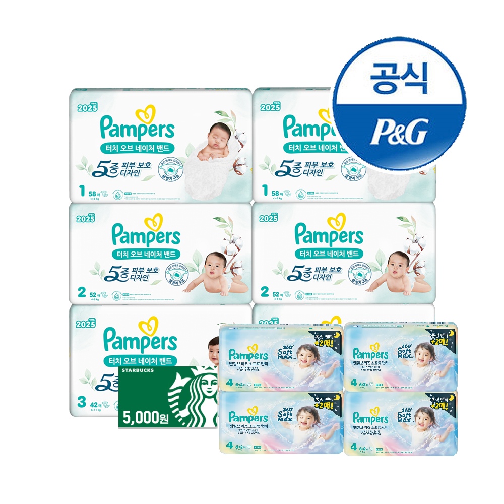 팸퍼스 통잠팬티 기저귀 2박스모음딜+스타벅스5천원+체험팩16매증정