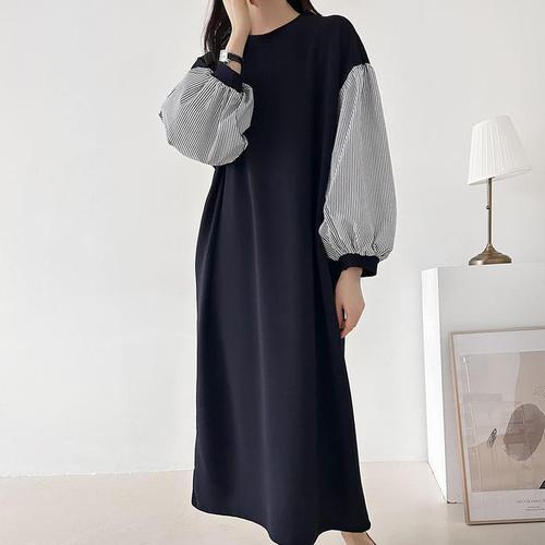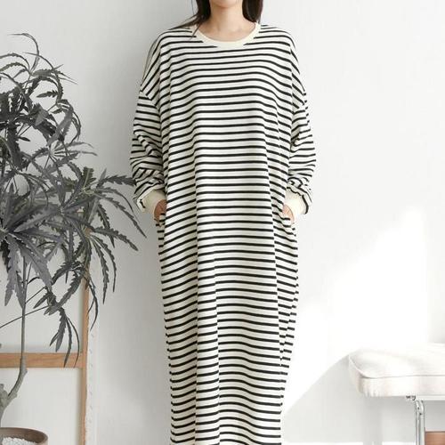 [신상오픈런]여성 캐주얼 스트라이프 롱원피스 루즈핏 데일리 나들이복 (46120200)