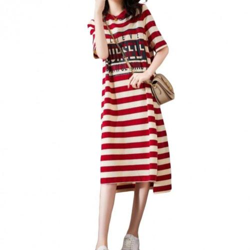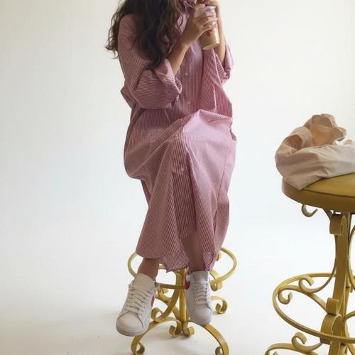 [신상오픈런]여성 캐주얼 스트라이프 롱원피스 나들이용 루즈핏 데일리룩 (46120201)
