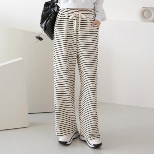 더보느 여성용 스트라이프 일자 밴딩 팬츠