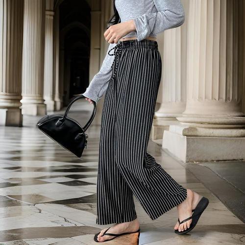 smile morli 시원한 스트라이프 와이드 바지 여성 팬츠
