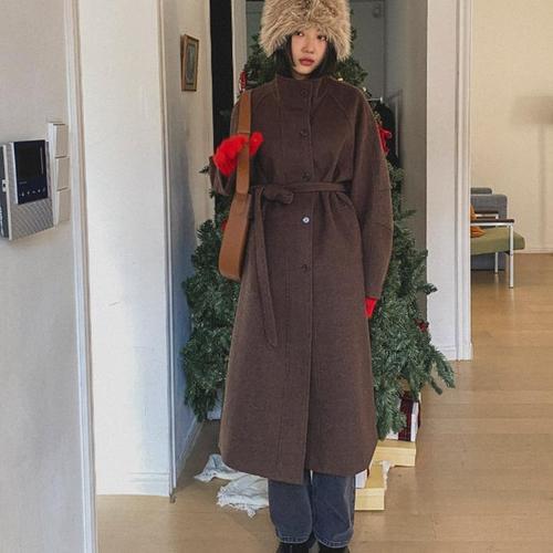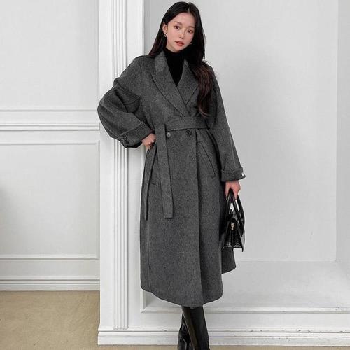 [다잇템]여성 컨템포러리 스트랩 겨울모직 슬릿 롱코트 (11562208A)