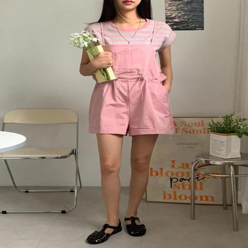 [다잇템]여자 티셔츠 캐주얼룩 서스펜더 SS 세트 (10400370A)