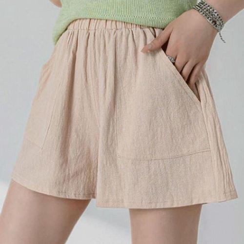 여성 패션 단색 탄성 하이 웨이스트 포켓 단추 업 루즈한 코튼 리넨 5 길이 반바지, 부드럽고 편안한 바지, 여름
