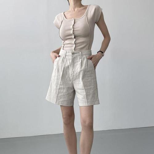 [다잇템]여자 린넨팬츠 플리츠 핀턱 와이드핏 반바지_3 (28521846A)