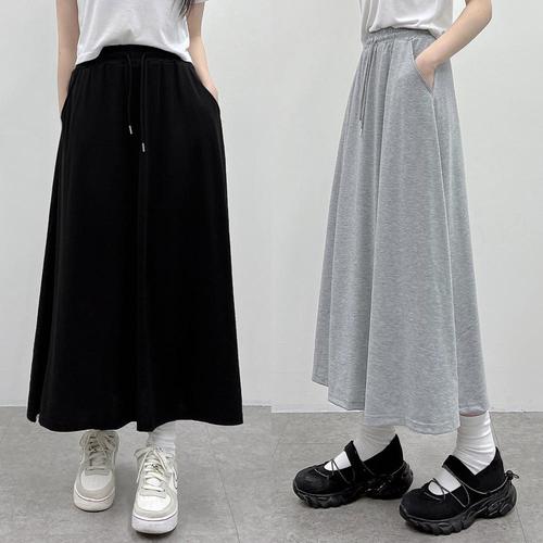 [토마토팩토리] 2종세트 옆트임 스판 롱치마/롱스커트 블랙+차콜