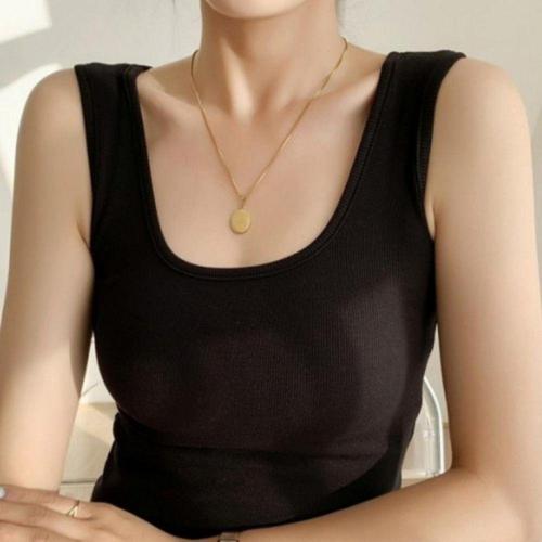 [옷자락] 여성 슬림 면스판 크롭캡 나시 단가라 내장