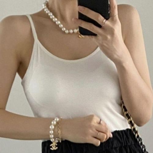 [오노마] ONM 절개 더블끈 크롭 민소매 캡나시 스판 이너나시 심플