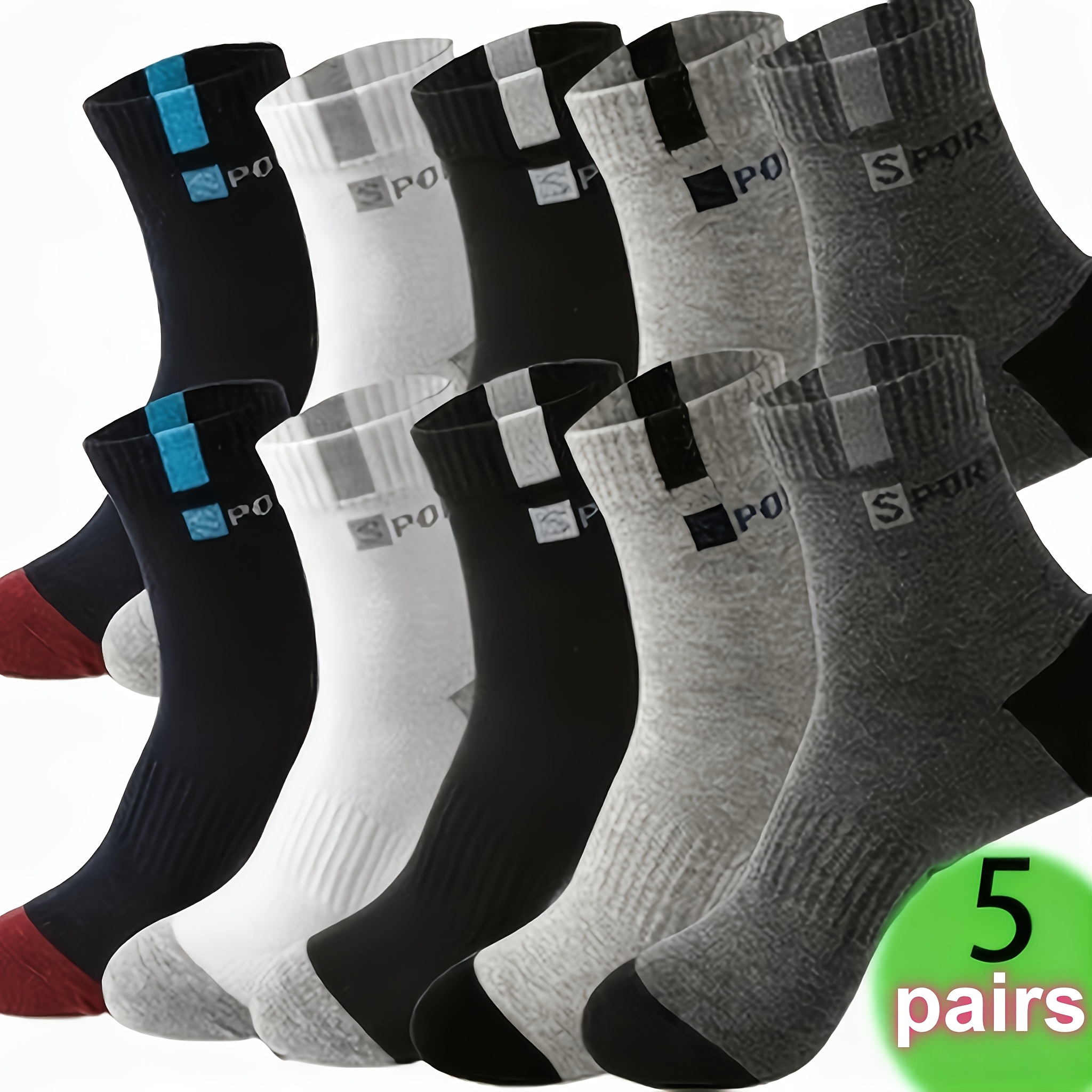 TEMU 5켤레 양말 남성용 런닝 사계절 양말 탈취 방지 땀 흡수 통기성 화이트 미드 삭스 농구 롱 삭스 남성용 숏 삭스 학생 스포츠 삭스 레터 삭스, 땀 방지