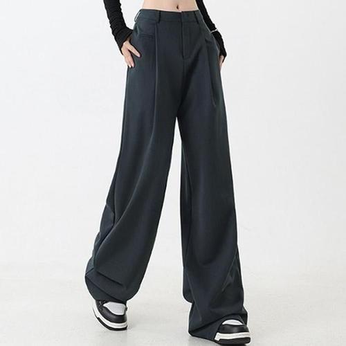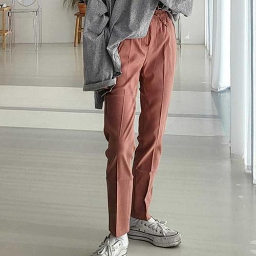 타임퓨어 여성 정장 바지 데일리 캐주얼 통바지 스판 좋은 핀턱 밴딩 일자 와이드 팬츠 사계절 긴바지 슬림 스트레이트 핏