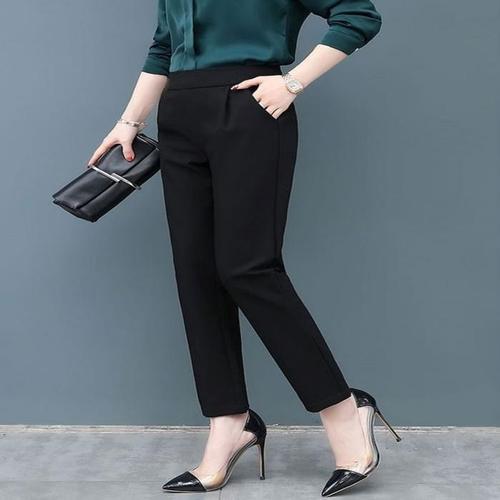 [주식회사 브이와이][JHQRLOD0_4B]여성 밴딩바지 블랙 슬림핏 스판바지 출근룩 (23852393A)