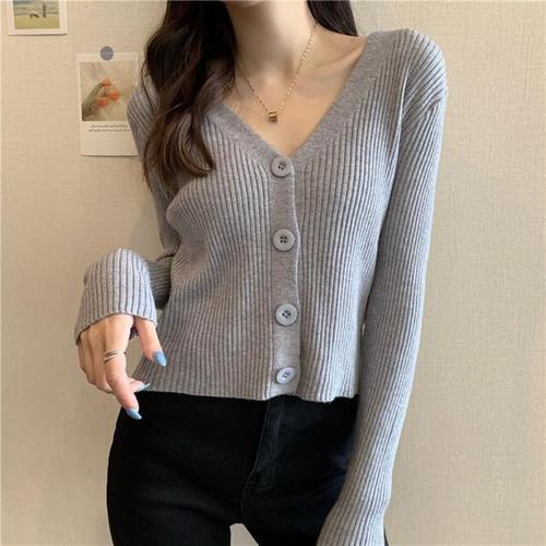 브이넥 여성 크롭 가디건 긴팔 니트 상의 간절기 데일리룩 슬림핏 가디건 코디