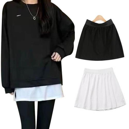 [다잇템]여자 슬림핏 에이라인 면원단 슬릿 검정 스커트 (10635742A)