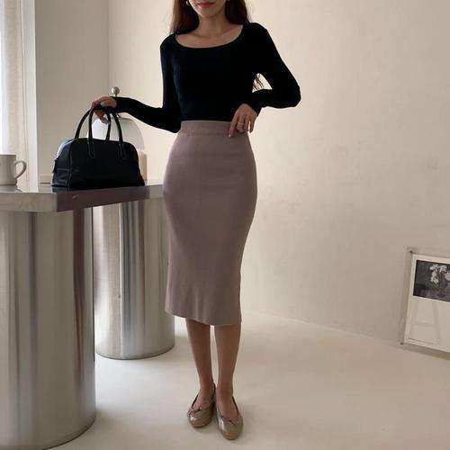 [다잇템]여자 슬림핏 스웨터 중간 비스코스 슬릿 스커트 (11098538A)