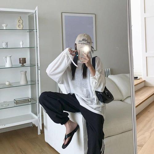 [옷자락] 여자 봄신상 여름 루즈핏 시스루 라운드넥 티셔츠
