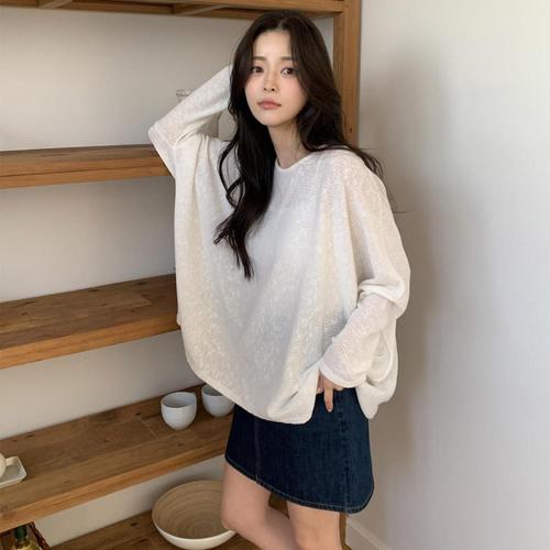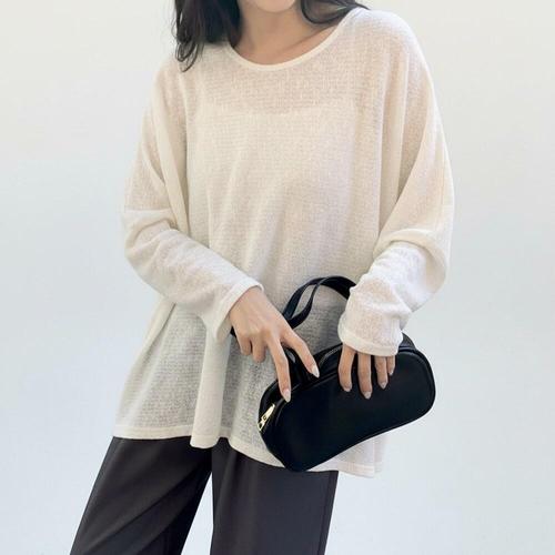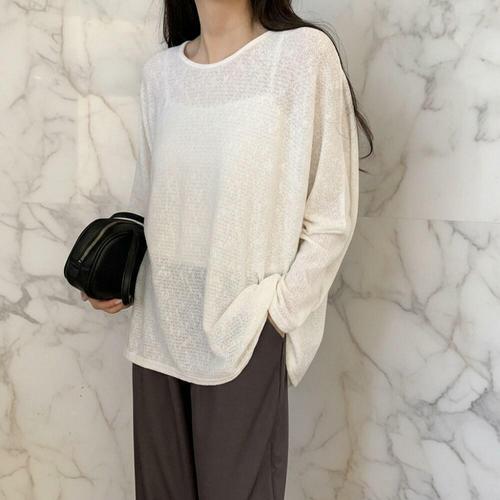 [미라클세븐]여성 오버사이즈 라운드넥 시스루 긴팔 티셔츠 가오리핏