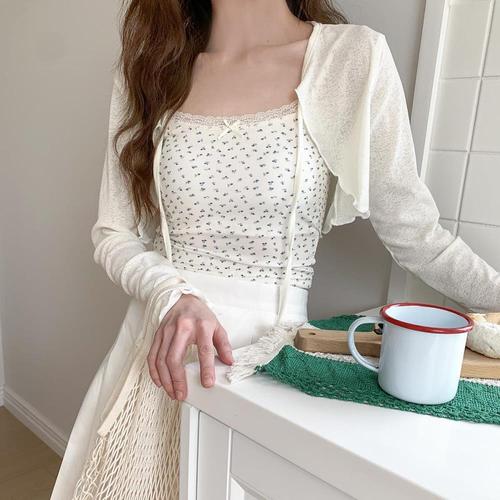 [옷자락]여자 시스루 리본 플라워 나시 여리핏 볼레로 니트 세트
