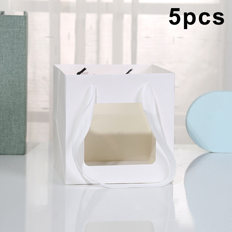 TEMU 창문이 있는 15X15X15Cm 크기의 사각 크라프트 종이 봉투 5개 세트. 생일, 결혼식, 추수감사절, 스승의 날, 크리스마스와 같은 특별한 날에 적합합니다. 선물, 작은 화분, 일상 또는 축제 파티 포장에 완벽합니다.