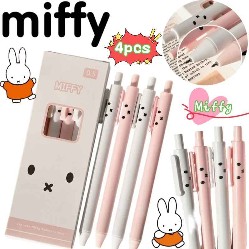 새로운 미피 젤 펜, 독창적이고 고급스러운 만화 프린팅, 귀여운 소녀 하트 디자인, 학생 시험용, 부드럽고 빠르게 건조되는 내구성 있는 푸시펜 4개입