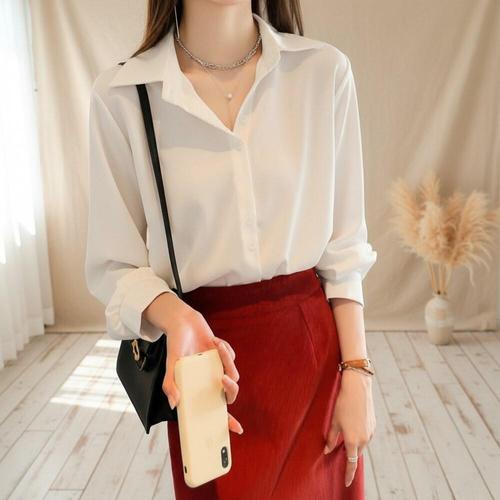 [오너클랜]인기상품 심플 카라 여성용 루즈핏 셔츠 오피스 데일리 블라우스 [WFLLJZH_260305]