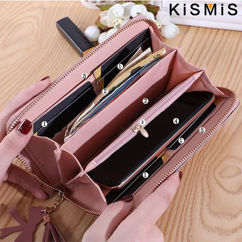 여성용 RFID 도난 방지 지갑, 리치 프린트, 부드러운 가죽, 봉투 장 지갑, 초박형, 휴대용, 간단한 핸드백