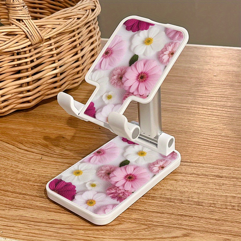 TEMU 고급 패션 창의력 조절 가능 데스크탑 따뜻한 꽃무늬 휴대폰 거치대 - 접이식, 높이 및 각도 조절 가능, 비-ABS 소재, 4-8인치 장치용 범용, 사무실 및 침실에 적합, 아이폰 아이패드 삼성 태블릿 VB1 호환