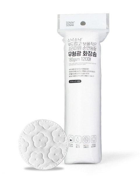 [소낙소낙] 부드럽고 보풀적은 프리미엄 순면원형 무형광 화장솜 180gsm 120매