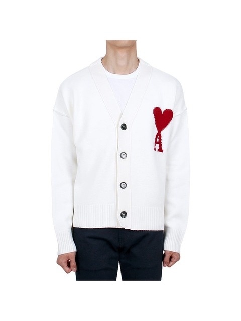 아미 레드 빅하트로고 오버핏 울 공용 가디건 UKC367 018 154
